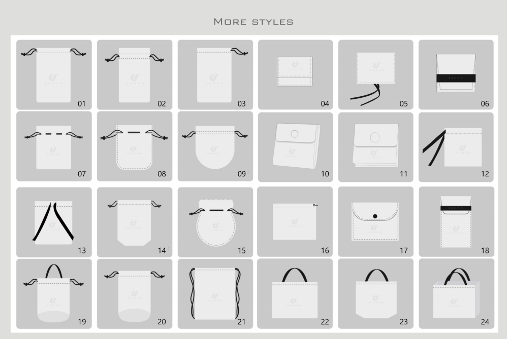 3. Bolsa por estilo --- cordón / botón / cremallera / magnético / arco y cinta